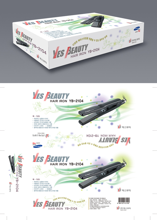 이미용품인 고데기의 박스디자인 입니다.