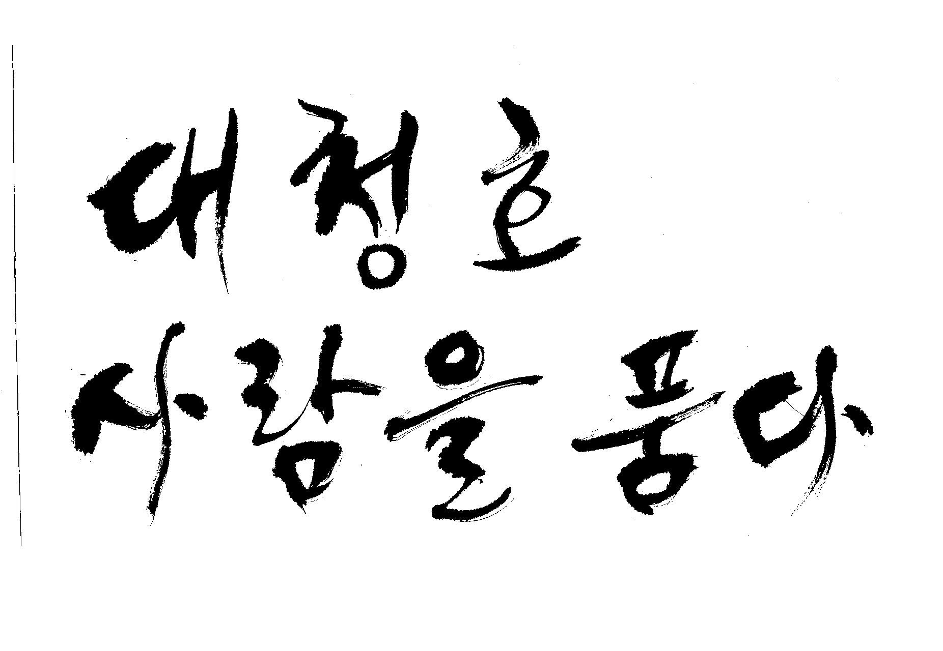 캘리 부탁드려요 김철호 일반 0 5495 2009.06.03 12:12 > > > > > 대청호 > > 사람을 품다 > > > > - 방송용 다큐멘터리에 들어갈겁니다 > > 죄송합니다만 빨리 부탁드려요 > > 두줄로 가운데 맞춤으로 써주세요 - > > > > 줄맞춤은 알아서... >